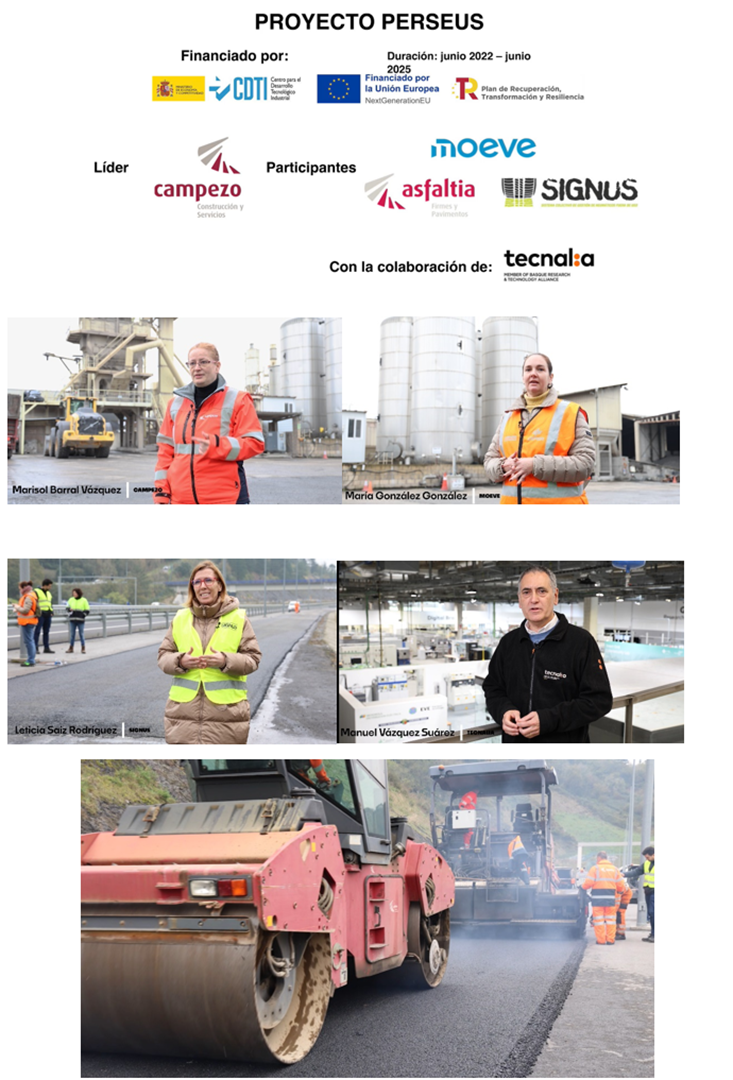 El consorcio del proyecto —integrado por CAMPEZO, ASFALTIA, MOEVE, SIGNUS y el centro de investigación y desarrollo tecnológico TECNALIA— ha trabajado de forma coordinada en el desarrollo y validación de estas mezclas tanto en laboratorio como en un tramo de prueba real, ejecutado en la AP-8 “Variante Sur Metropolitana”. Este tramo fue facilitado por la Diputación Foral de Bizkaia a través de la iniciativa Bizkaia Connected Corridor (BCC).